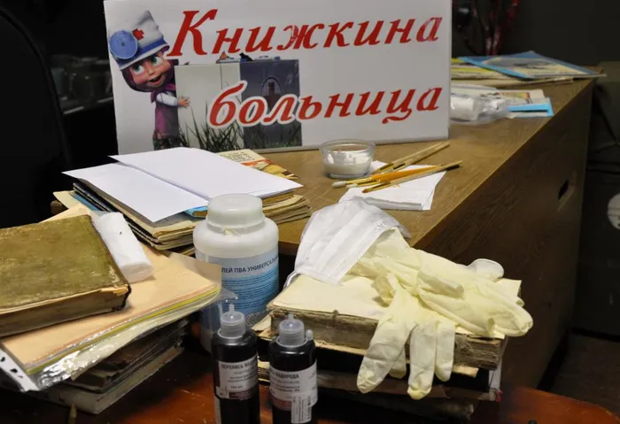 На очередную «Книжкину больницу» пришли ребята, желающие узнать как правильно восстанавливать "заболевшие" книги. Главный хранитель музея Светлана Борисовна Акулова-Пивоварова рассказала ребятам как делают книги, из чего они состоят и как правильно за ними ухаживать. Ребята собственноручно смогли "отремонтировать" несколько детских книг, а также понаблюдать за научными сотрудниками музея, занимающимися восстановлением книг, подвергшихся воздействию сырости.